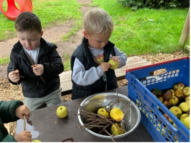 Forest School is an integral part of our nursery school curriculum and takes place in our Apple Garden. The Apple Garden is a safe and diverse natural outdoor area in which the children can play, explore and discover, take risks and learn. The site has a variety of trees, plants, play equipment, a wooden shelter and a fire bowl clearing.