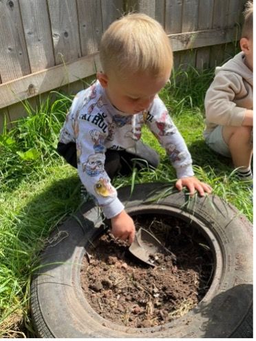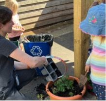 We include our children in the effective composting and waste management systems that we have in place. In the nursery garden we have two compost bins and a worm farm, which play a vital role in reducing food waste. Each week, our children actively engage in this process by taking responsibility for food waste generated during snack and lunch times. They carefully sort through this waste and place organic materials into the compost bins. Additionally, we talk about the importance of recycling and use designated recycling bins which the children enjoy taking outside to the big recycling wheelie bins. By involving the children in these sustainable practices, we are fostering a sense of responsibility and environmental stewardship in the next generation. Our commitment to composting and effective waste management not only reduces our ecological footprint but also serves as an educational tool for our community.