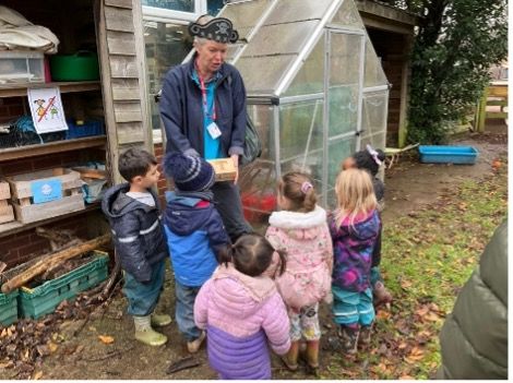 Each year we invite people from outside of nursery school to come in and hold educational workshop sessions with the children. We utilise their educational knowledge and skills to create collaborative opportunities for the children. The visits help to provide exciting experiences for our children to learn about a sustainable future.
